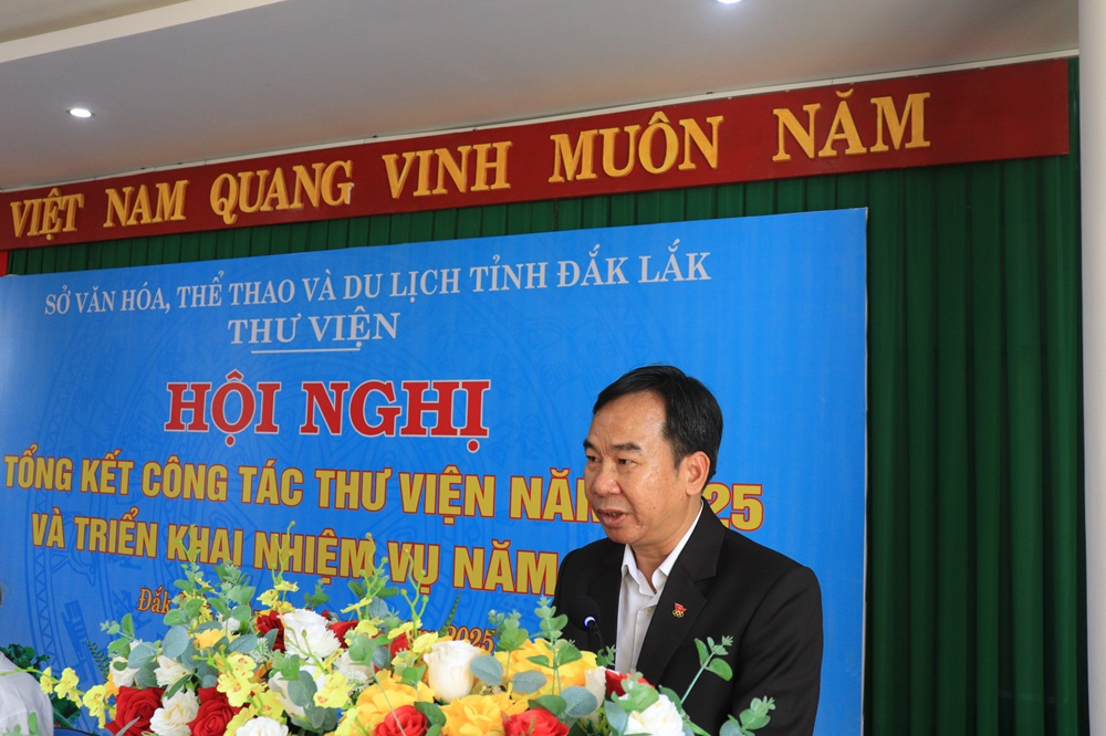 Ngày 24/12/2025, Thư viện tỉnh Đắk Lắk tổ chức Hội nghị tổng kết công tác năm 2025 và triển khai nhiệm vụ năm 2026. Hội nghị diễn ra trong bối cảnh đơn vị có nhiều thay đổi về tổ chức bộ máy, đồng thời phải đối mặt với không ít khó khăn do tác động của thiên tai và yêu cầu đổi mới trong giai đoạn hiện nay. Tuy nhiên, với tinh thần đoàn kết, chủ động và sáng tạo, Thư viện tỉnh đã nỗ lực hoàn thành tốt các nhiệm vụ được giao, tạo nhiều dấu ấn nổi bật trong hoạt động chuyên môn, đặc biệt là trong chuyển đổi số và phục vụ cộng đồng.